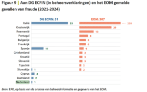 De fraude met het Europees coronaherstelfonds (RRF) van 650 miljard euro, waarvan bijna 300 miljard aan leningen betaald is en ruim 350 miljard aan subsidies, laat nog te wensen over. Nederland staat onderaan in de lijst met fraudemeldingen.
